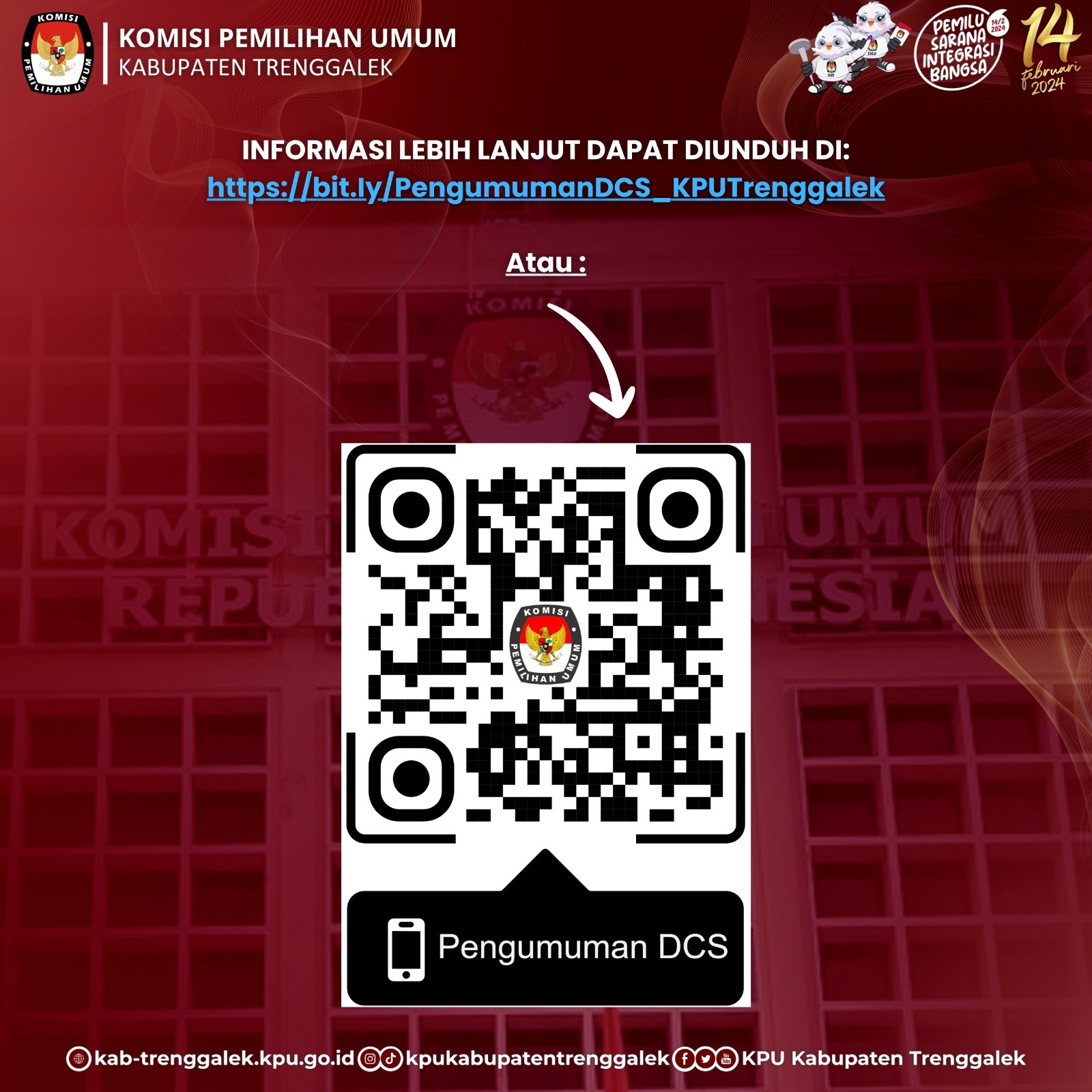 Daftar Calon Sementara (DCS) Anggota DPRD Kabupaten Trenggalek dapat diunduh disini, atau scan barcode dibawah ini :