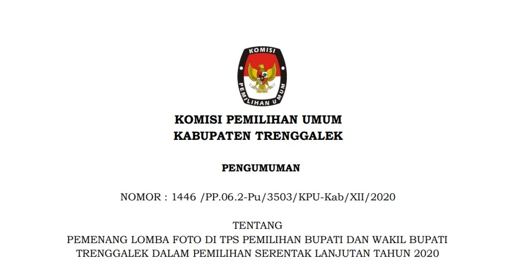 PENGUMUMAN: PEMENANG LOMBA FOTO DI TPS PEMILIHAN BUPATI DAN WAKIL BUPATI TRENGGALEK DALAM PEMILIHAN SERENTAK LANJUTAN TAHUN 2020