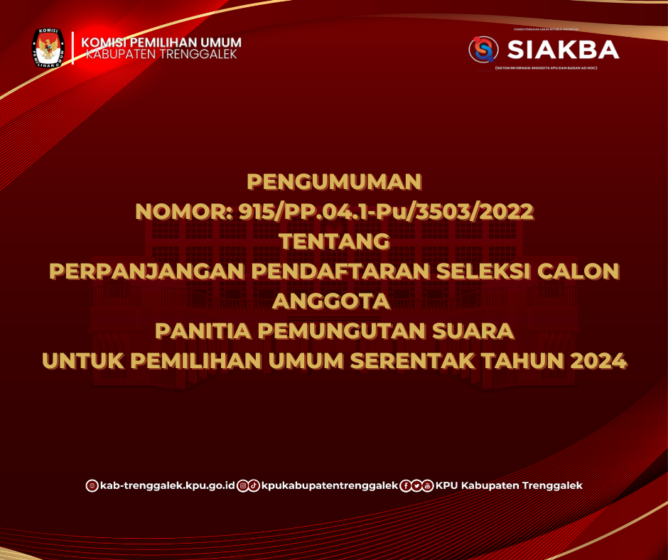 PENGUMUMAN PERPANJANGAN PENDAFTARAN SELEKSI CALON ANGGOTA PANITIA PEMUNGUTAN SUARA UNTUK PEMILIHAN UMUM SERENTAK TAHUN 2024