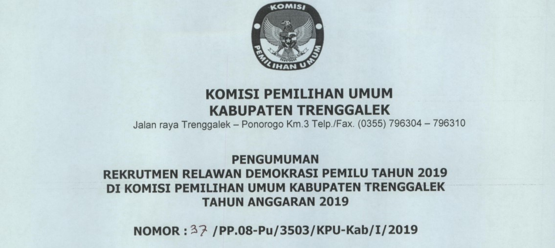 PENGUMUMAN REKRUTMEN RELAWAN DEMOKRASI PEMILU TAHUN 2019 DI KPU KAB. TRENGGALEK TAHUN ANGGARAN 2019