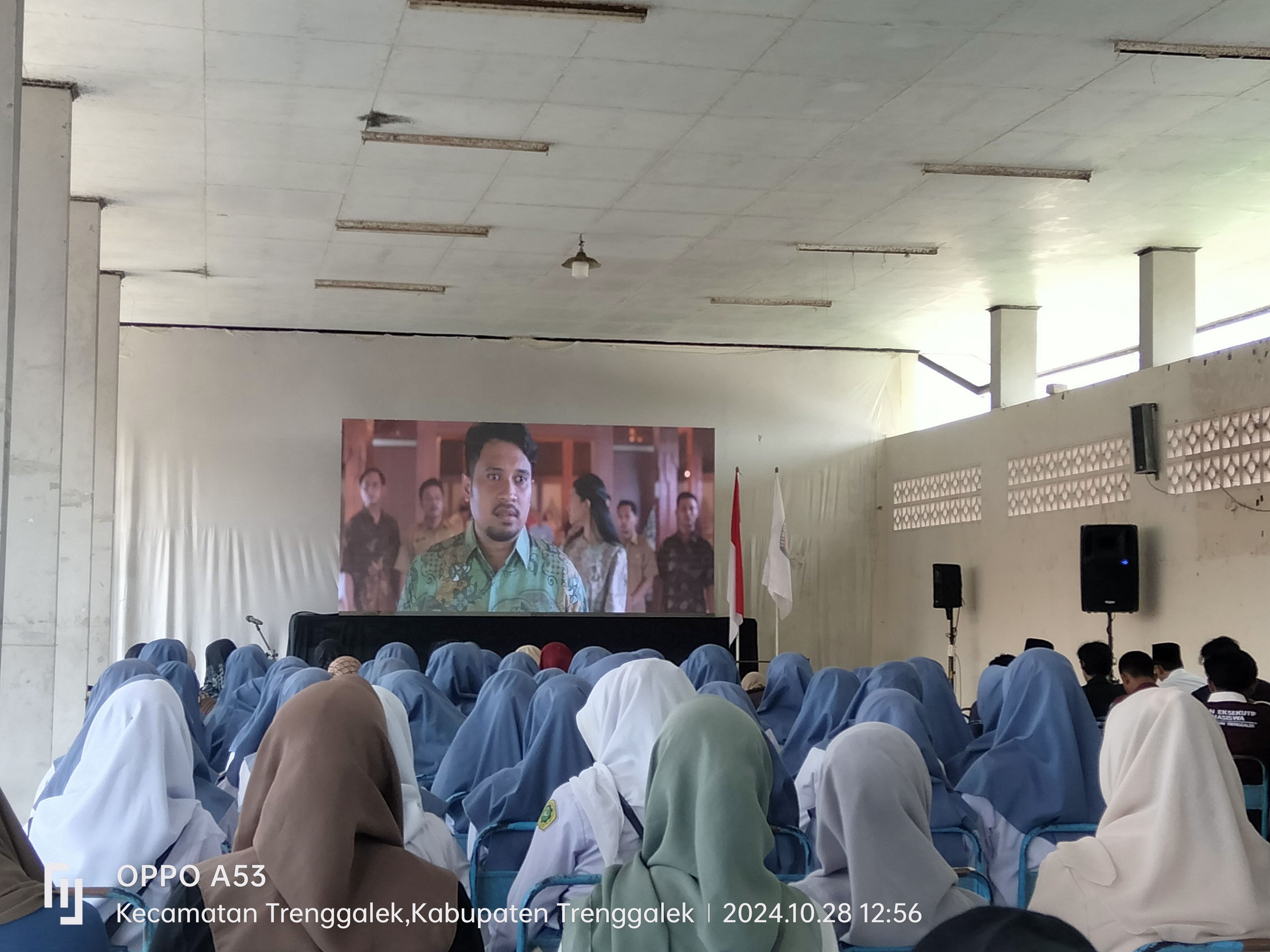 Hari ini, Senin, tanggal 28 Oktober 2024, Komisi Pemilihan Umum Kabupaten Trenggalek menyelenggarakan kegiatan Goes to Campus pada Hari Sumpah Pemuda dengan kegiatan Nonton Bareng Film Tepatilah Janji. Kegiatan yang diselenggarakan di Hall STIT Sunan Giri Trenggalek tersebut dihadiri oleh Ketua dan dua orang Anggota KPU Kabupaten Trenggalek Divisi Hukum dan Pengawasan serta Divisi Perencanaan, Data dan Informasi, Sekretaris beserta jajaran Sekretariat KPU Kabupaten Trenggalek, pimpinan dan pengajar beserta seluruh mahasiswa dan mahasiswi STIT Sunan Giri Trenggalek serta pelajar Madrasah Ponpes Raden Paku Trenggalek. Acara dimulai oleh MC pada pukul 10.00 WIB diawali Menyanyikan Lagu Kebangsaan Indonesia Raya yang dipimpin oleh Dirigen dan dilanjutkan jingle Pemilihan Bupati dan Wakil Bupati Trenggalek Tahun 2024. Acara dilanjutkan Pembacaan Doa yang dipimpin oleh Ustadz Achmad Irfani Setiawan. Acara dibuka secara resmi oleh Ketua KPU Kabupaten Trenggalek, Istatiin Nafiah, pada pukul 10.50 WIB.