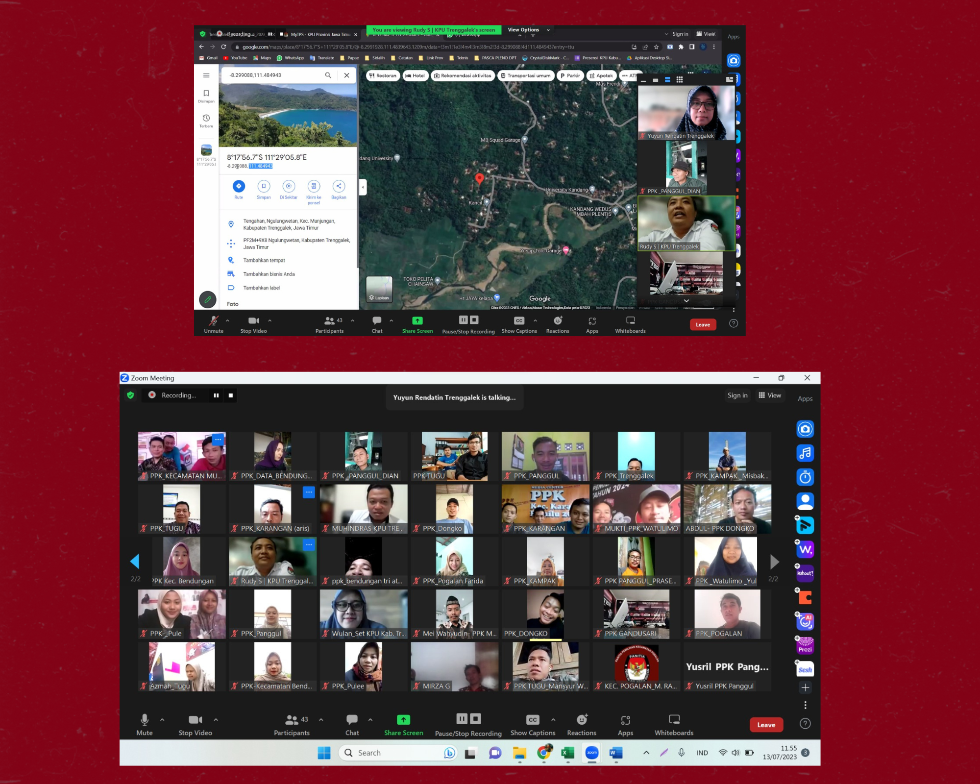 Gembong Derita Hadi, Ketua KPU Kabupaten Trenggalek yang mengikuti zoom dari lokasi sekretariat PPK Trenggalek menyampaikan pentingnya PPK untuk hadir secara fisik di sekretariat. PPK tidak diperkenankan ijin mangkir dari rapat zoom karena kepentingan pekerjaan lainnya. Sebab rapat zoom ini justru memudahkan tidak hadir secara fisik karena bersifat daring, sehingga tidak ada alasan untuk tidak mengikuti.