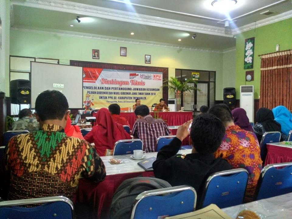 Meghadapi berbagai kegiatan yang berbasis anggaran, Divisi Keuangan, Umum, dan Logistik (KUL) PPK Kecamatan Trenggalek mengikuti acara Bimbingan Teknis tentang Pengelolaan dan Pertanggung jawaban Keuangan pada Pemilihan Gubernur dan Wakil Gubernur Jawa Timur tahun 2018.