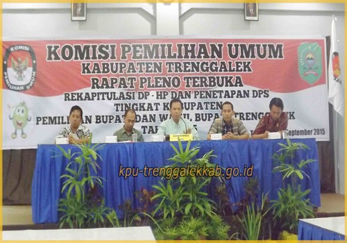 KPU-TRENGGALEKKAB.GO.ID Rabu (02/09/2015) Komisi Pemilihan Umum Kabupaten Trenggalek menggelar Rapat Pleno Terbuka Rekapitulasi Daftar Pemilih Hasil Pemutakhiran (DPHP) dan Penetapan Daftar Pemilih Sementara (DPS) Pemilihan Bupati dan Wakil Bupati Trenggalek Tahun 2015.