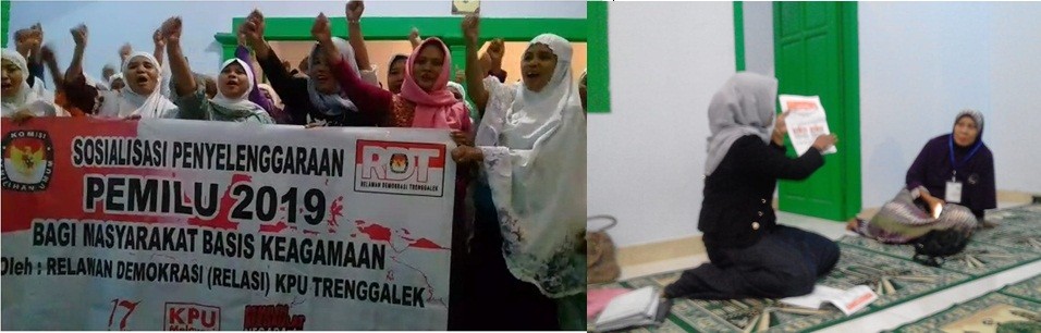 Pada Rabu malam tanggal 30 Januari 2019, kedua perempuan ini hadir pada forum ibu-ibu jamaah yasin di Dusun Jeruk Desa Kedungsigit, Kecamatan Karangan Kabupaten Trenggalek, tepatnya RT 18 dan RT 19 RW 03. Dua orang perempuan relawan demokrasi ini tentu saja sudah ijin sehari sebelumnya dengan tokoh setempat, khususnya pimpinan ibu-ibu jemaah di Mushola yang tak tergolong besar bangunannya itu.