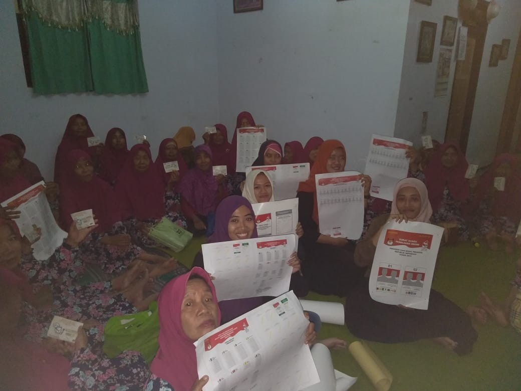 “Ibu-ibu, tahun ini kita di pemilu akan memilih 5 calon sekaligus. Jadi nanti waktu ibu-ibu datang ke TPS untuk nyoblos, masing-masing orang akan mendapat 5 jenis surat suara sekaligus. Terus ini ibu-ibu sudah tahu kapan kita ada acara pemilu?”, tanya Novi.