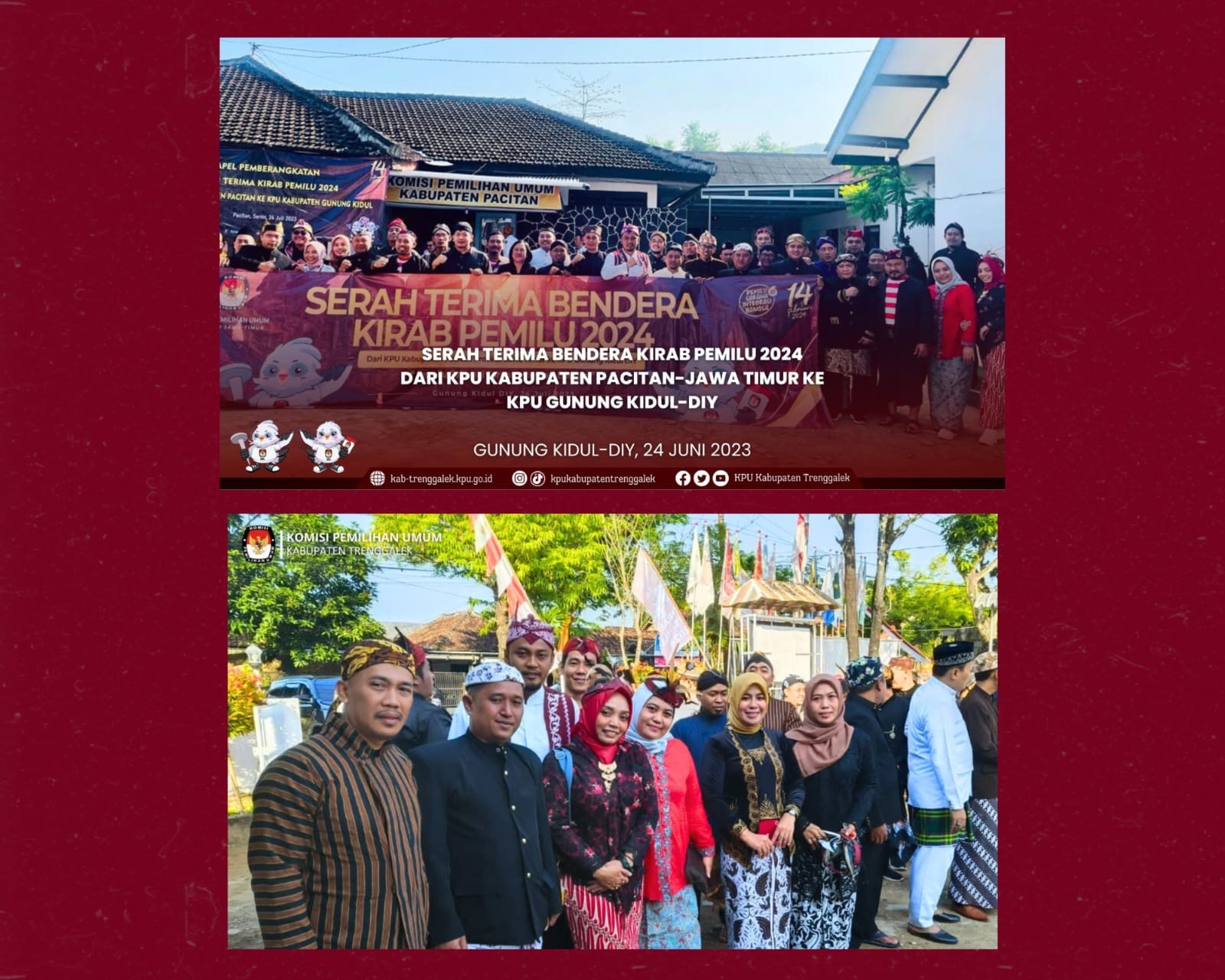 SERAH TERIMA KIRAB PEMILU DARI JATIM KE DIY JALUR 4: KPU TRENGGALEK IKUTI ROMBONGAN KE GUNUNG KIDUL