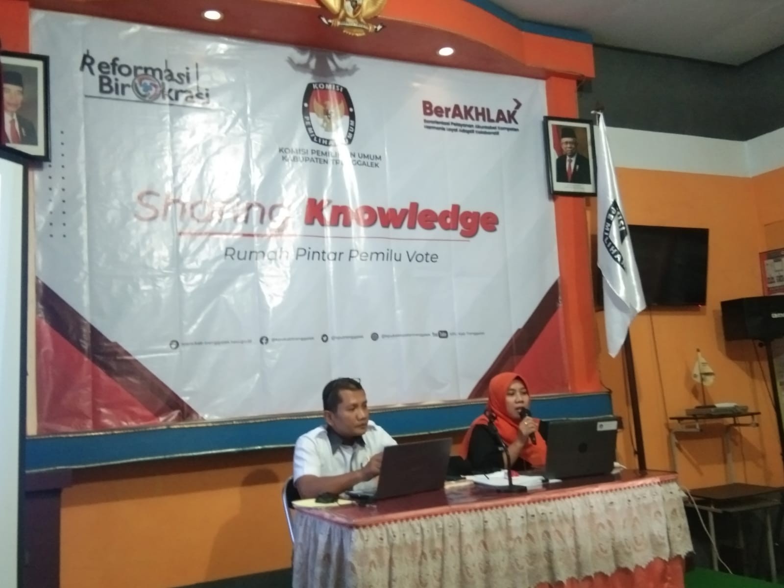 Pelaksanaan Pemilu merupakan amanat Undang-Undang Dasar Tahun 1945. Hal tersebut karena Pemilu sebagai sarana pelaksanaan kedaulatan rakyat dan motor penggerak mekanisme sistem politik di Indonesia. Peran strategis tersebut dilaksanakan secara langsung, umum, bebas, rahasia, jujur dan adil dalam Negara Kesatuan Republik Indonesia berdasarkan Pancasila dan Undang-Undang Dasar Negara Republik Indonesia Tahun 1945. Setiap negara yang menganut demokrasi melaksanakan Pemilu. Pemilu yang demokratis bukan sekedar lambang atau prosedur namun juga kompetitif, inklusif, subtantif, dan mencerminkan kedaulatan rakyat. Dalam upaya mempersiapkan kualitas penyelenggaraan Pemilu Tahun 2024, KPU Kabupaten Trenggalek melaksanakan sharing knowledge dengan topik seputar daerah pemilihan untuk Pemilu Anggota DPRD Kabupaten Trenggalek. Kegiatan tersebut dihadiri seluruh pegawai KPU Kabupaten Trenggalek. Bertindak sebagai narasumber adalah Istatiin Nafiah, Anggota KPU Kabupaten Trenggalek Divisi Teknis Penyelenggaraan. Acara dipandu oleh moderator yaitu Nanang Eko Prasetyo, Kasubbag Teknis Penyelenggaraan Pemilu dan Hubungan Masyarakat.