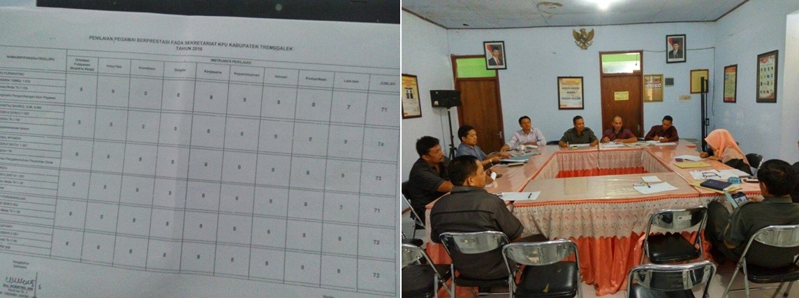 Dalam rapat ini, peserta rapat sudah disuguhi hasil penilaian dari pihak sekretariat yang berbasiskan usulan dari tiap subagian. Isian penilaian sudah sesuai dengan teknik yang diharapkan oleh Edaran KPU RI. Instrumen penilaian sudah dianggap sesuai. Dan dari penilaian dari masing-masing kriteria, sudah disetujui.