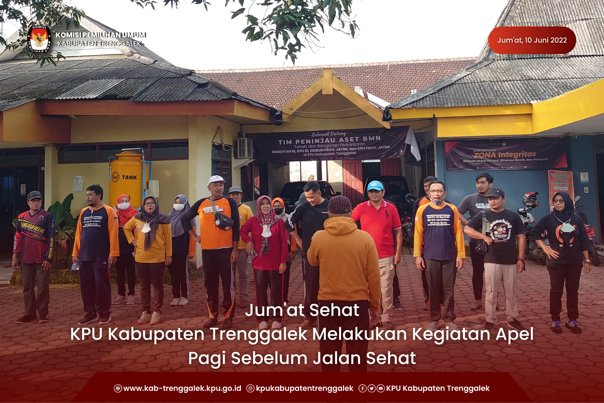 TRENGGALEK- Hari ini, Jumat, tanggal 10 Juni 2022, KPU Kabupaten Trenggalek menyelenggarakan kegiatan jalan sehat. Kegiatan tersebut diikuti oleh seluruh pegawai KPU Kabupaten Trenggalek, baik Komisioner maupun Sekretariat KPU Kabupaten Trenggalek. Acara dimulai pada pukul 07.30 dengan diawali Apel sebagai briefing pra-kegiatan. Apel dipimpin oleh Nurani, Anggota KPU Kabupaten Trenggalek Divisi Sosialisasi, Pendidikan Pemilih, Partisipasi Masyarakat, dan Sumber Daya Manusia. Dalam pengarahannya, Nurani menyampaikan bahwa jalan sehat dilaksanakan untuk menyehatkan badan juga membangun kekompakan/soliditas lembaga KPU Kabupaten Trenggalek. Ditambahkannya, rute jalan sehat kali ini tidak terlalu jauh namun melewati jalan-jalan dengan pemandangan yang indah. “Rute kegiatan jalan sehat kali ini dimulai dari Kantor KPU Kabupaten Trenggalek lalu ke arah barat sampai di perempatan belok ke kanan, arah pasar Sumber terus ke Utara lalu ke arah Barat menuju ke Balai Desa Ngentrong. Sesampai di Balai Desa Ngentrong ke arah Selatan sampai di Jalan Raya arteri, lalu ke arah timur jalan terus ke arah kantor KPU Kabupaten Trenggalek. Selama di perjalanan harap berhati-hati dan selalu menjaga protokol kesehatan. Kegiatan ini dilaksanakan agar semua sehat,dan tercipta kekompakan/soliditas”, kata Nurani dalam pengarahan kegiatan tersebut. Jalan sehat diikuti dengan penuh kegembiraan. Terdengar canda tawa selama langkah kaki para pegawai KPU Kabupaten Trenggalek melintasi jalan-jalan desa yang sangat indah pemandangannya. Pemandangan desa yang dihiasi hijaunya bukit dan sawah memberi energi positif dan mampu menyegarkan suasana. Imam Nurhadi, Anggota KPU Kabupaten Trenggalek Divisi Hukum dan Pengawasan berharap agar kegiatan yang menyehatkan semacam ini dapat memberi energi positif yang menyehatkan pegawai dan memperkuat lembaga KPU Kabupaten Trenggalek. “Harapan saya kegiatan yang menyehatkan semacam ini dapat memberi energi positif yang menyehatkan pegawai dan memperkuat lembaga KPU Kabupaten Trenggalek”, ucap Imam Nurhadi seusai mengikuti kegiatan tersebut. (Hupmas)