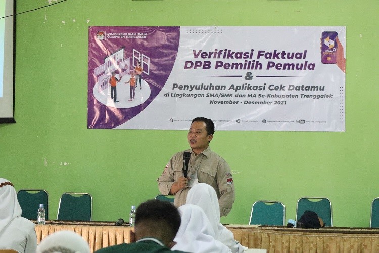 Berada di masa Pandemi Covid-19 dan Pemberlakuan Pembatasan Kegiatan Masyarakat atau PPKM, KPU Kabupaten Trenggalek melangsungkan kegiatan Verifikasi Faktual data yang merupakan amanah Undang-undang No 07 tahun 2017 untuk Pemutakhiran Daftar Pemilih Berkelanjutan (DPB). KPU Kabupaten Trenggalek bahkan mulai merangkul sekolah untuk faktualisasi data siswa yang telah berumur 17 tahun atau yang sering disebut pemilih pemula, agar nantinya bisa menjadi pemilih dan ikut berpartisipasi dalam ajang Pemilu 2024 mendatang.